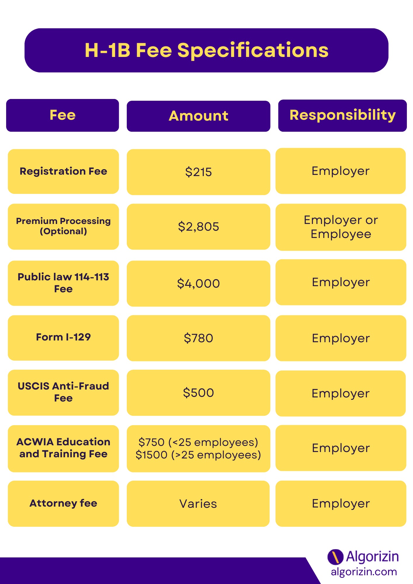 - A $500 fee applies to new H-1B petitioners or those changing employers, paid by the sponsoring employer.