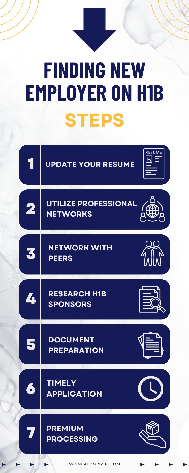 Securing new employment as an H-1B visa holder after losing your job should be top priority. You can transfer your H-1B without waiting for the next lottery, but finding a sponsor and meeting employer requirements can be tough. At Algorizin, our mentors provide full job hunt support, guiding you through job search tactics and resume improvement to find the ideal H-1B sponsor for you.